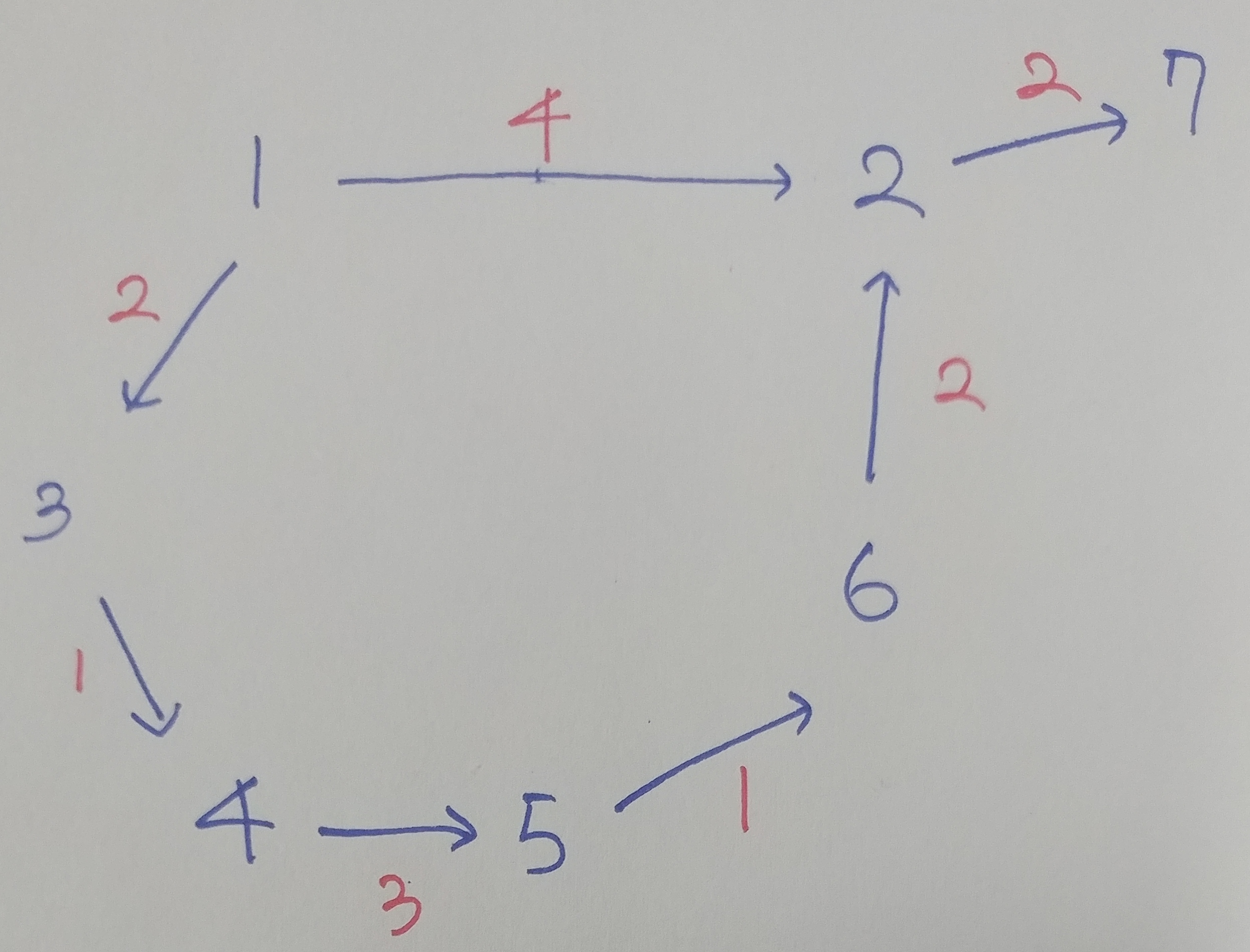 쉽게 설명하기 위해 밑의 그림을 첨부한다(빨간 숫자: 가중치, 파란 숫자: Node)